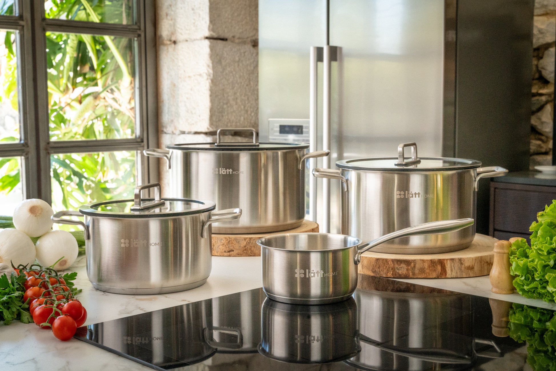 - Konstruktion: 5-lags (5-ply) bund med fuld induktion